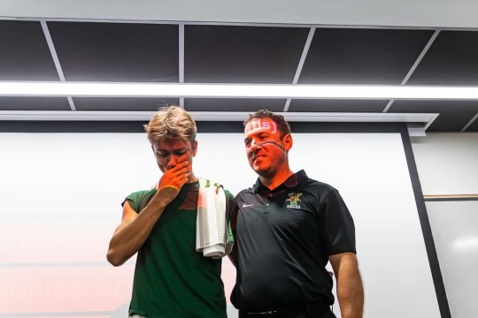 Taking a moment to gather myself before addressing my teammates after being awarded a roster spot – my coach, Rob Dow, standing by me for support. August to October 2023